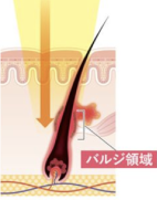 低出力レーザーの高速連続照射により 毛包内に熱を溜め バルジ領域を ゆっくりと破壊する |