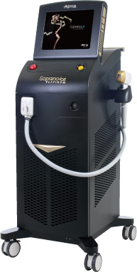 当院ではソプラノ・アイス・プラチナム(イスラエル:AlmaLaser社製)という機械で、SHR方式(Super Hair Removable)による「蓄熱式」レーザー脱毛を行っております。SHR方式は低いパワーのレーザーを1秒最大10回皮膚に当てることで、ムラなく・比較的安全に・少ない痛みで脱毛を行うことができます。太い毛からうぶ毛まで、あらゆる毛質や肌質に効果を発揮します。